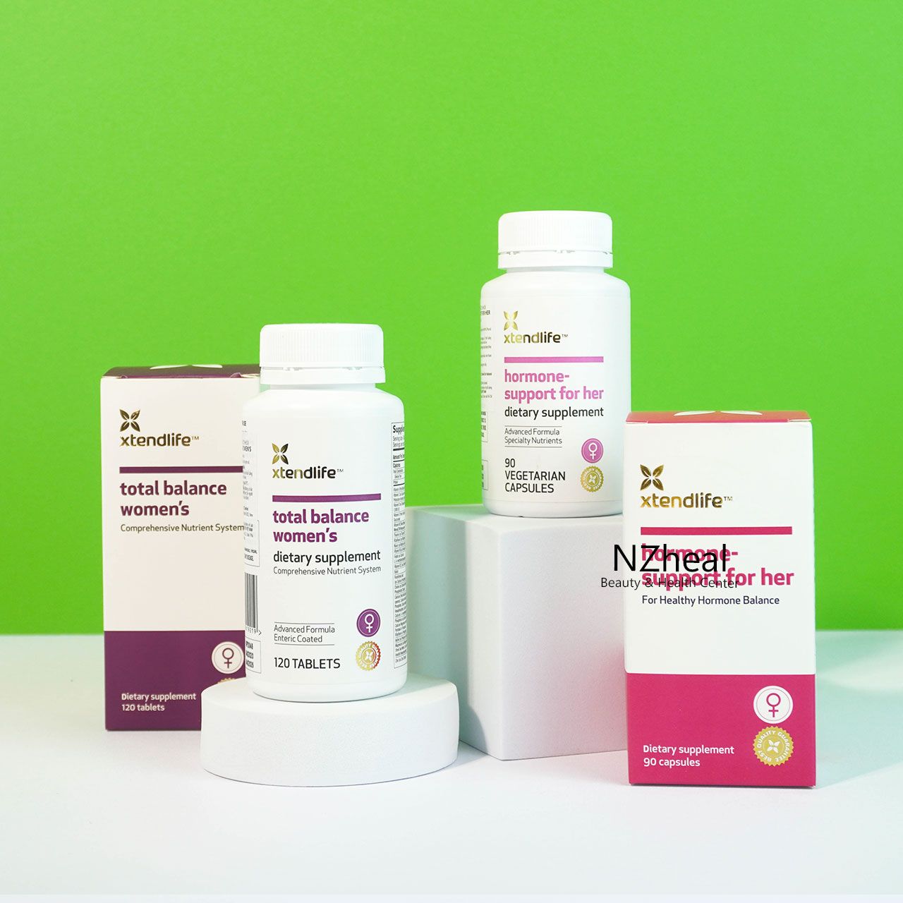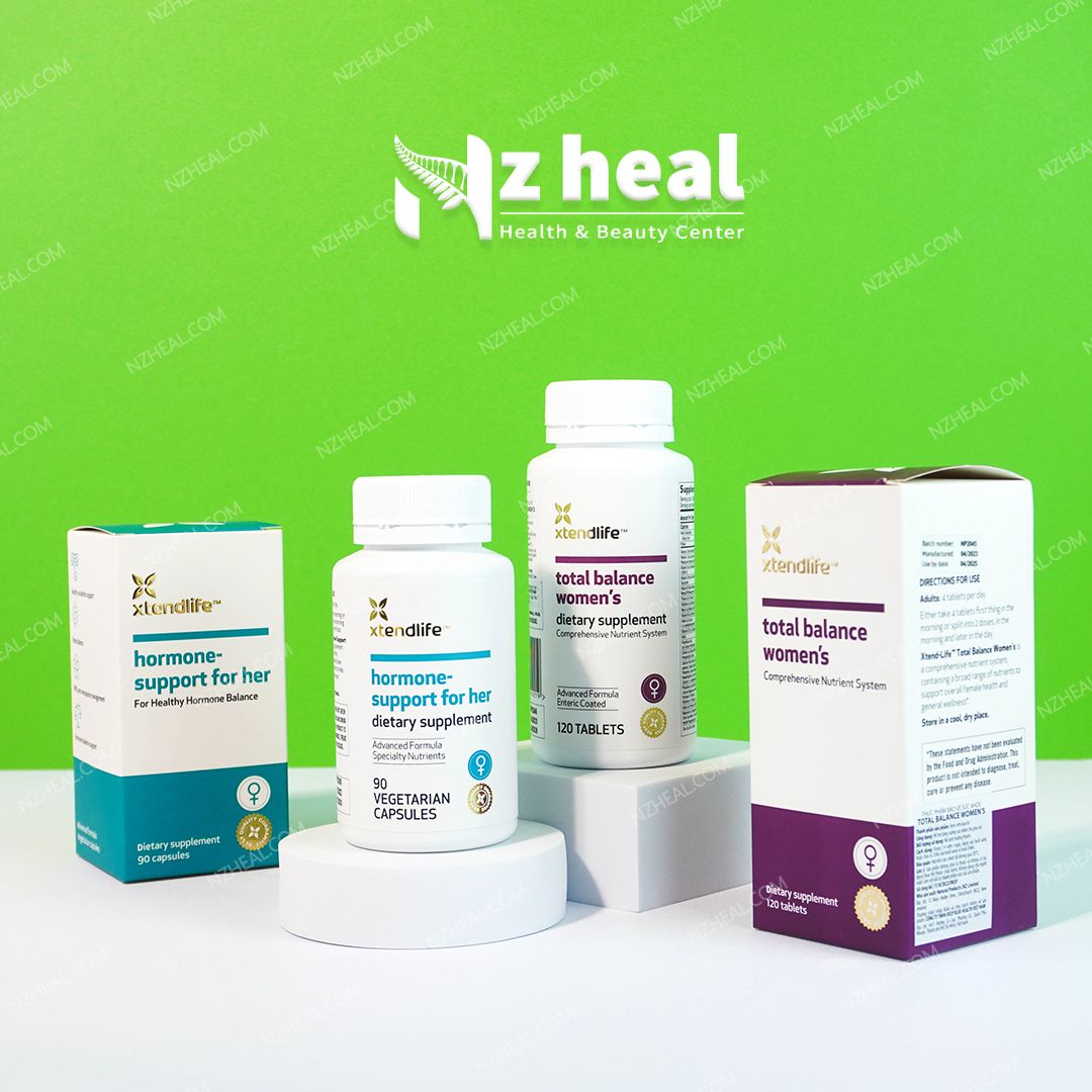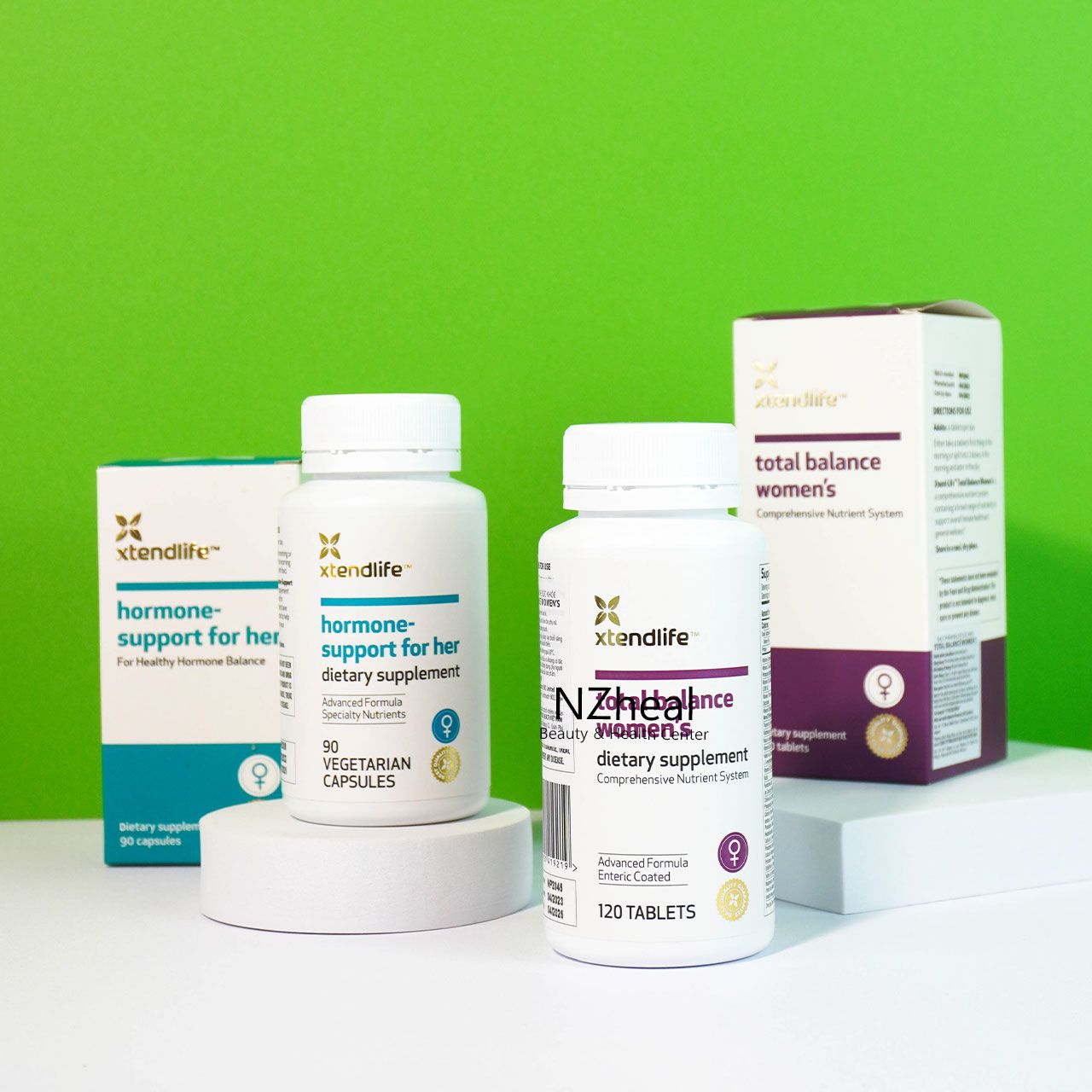 Viên uống Vitamin Tổng Hợp Cho Phụ Nữ Xtend-Life Total Balance Women’s và Viên uống Tăng Nội Tiết Tố Nữ Hormone Support For Her Xtend-Life là sự kết hợp hoàn hảo để cân bằng hormone, tăng cường năng lượng và bổ sung vitamin, đồng thời hỗ trợ chống lại các dấu hiệu lão hóa thông qua các enzym quý hiếm. Đặc biệt, bộ đôi này phù hợp cho phụ nữ đang gặp các vấn đề như tâm trạng không ổn định, bốc hỏa, đau đầu, đầy hơi và các triệu chứng khác liên quan đến mất cân bằng hormone. Ngoài ra, bộ đôi Total Balance Women's và Hormone Support còn giúp cải thiện ham muốn tình dục, tăng cường năng lượng liên quan đến quá trình lão hóa và hỗ trợ nhiều vấn đề sức khỏe tình dục.