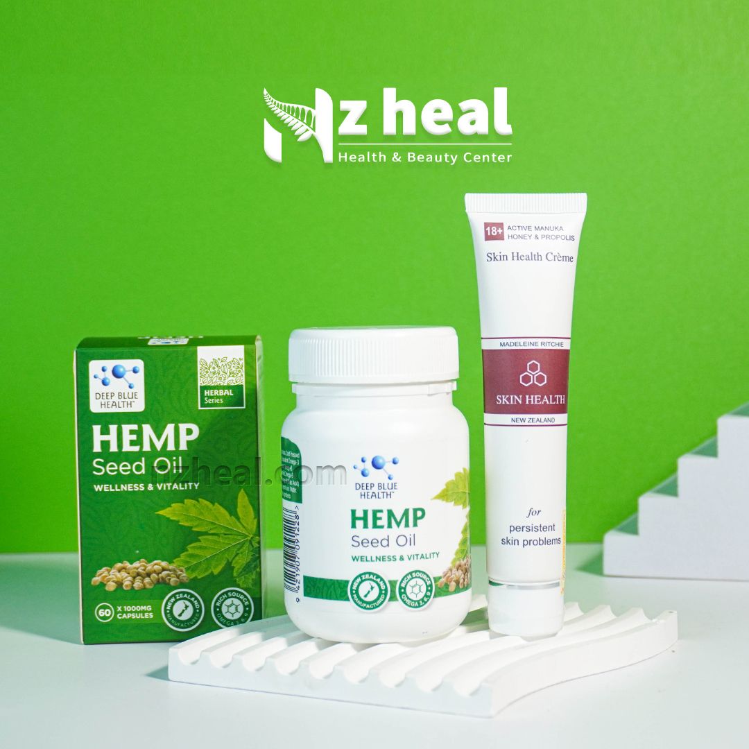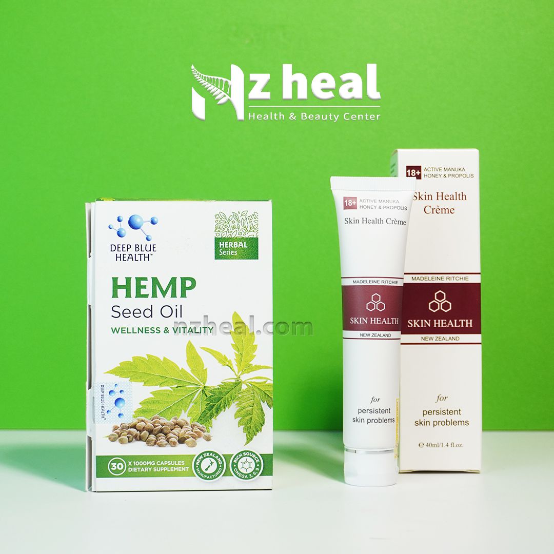 Bộ đôi giảm mụn nội tiết, chàm da: Viên dầu hạt gai Deep Blue Health Hemp Seed Oil và Kem mật ong Manuka Skin Health 18+ Madeleine Ritchie