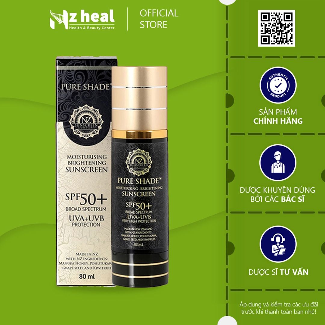 Pure Shade là dạng kem chống nắng với công thức siêu bảo vệ dịu nhẹ, không nhờn dính, không bít tắc lỗ chân lông và làm da sáng mịn, cải thiện da đáng kể với công dụng 4 in 1. Được sản xuất tại New Zealand, điều tạo nên hiệu quả cao và độ an toàn của kem chống nắng Pure Shade nằm ở bảng thành phần hoàn toàn từ thiên nhiên và có đặc tính đặc biệt tốt cho làn da.