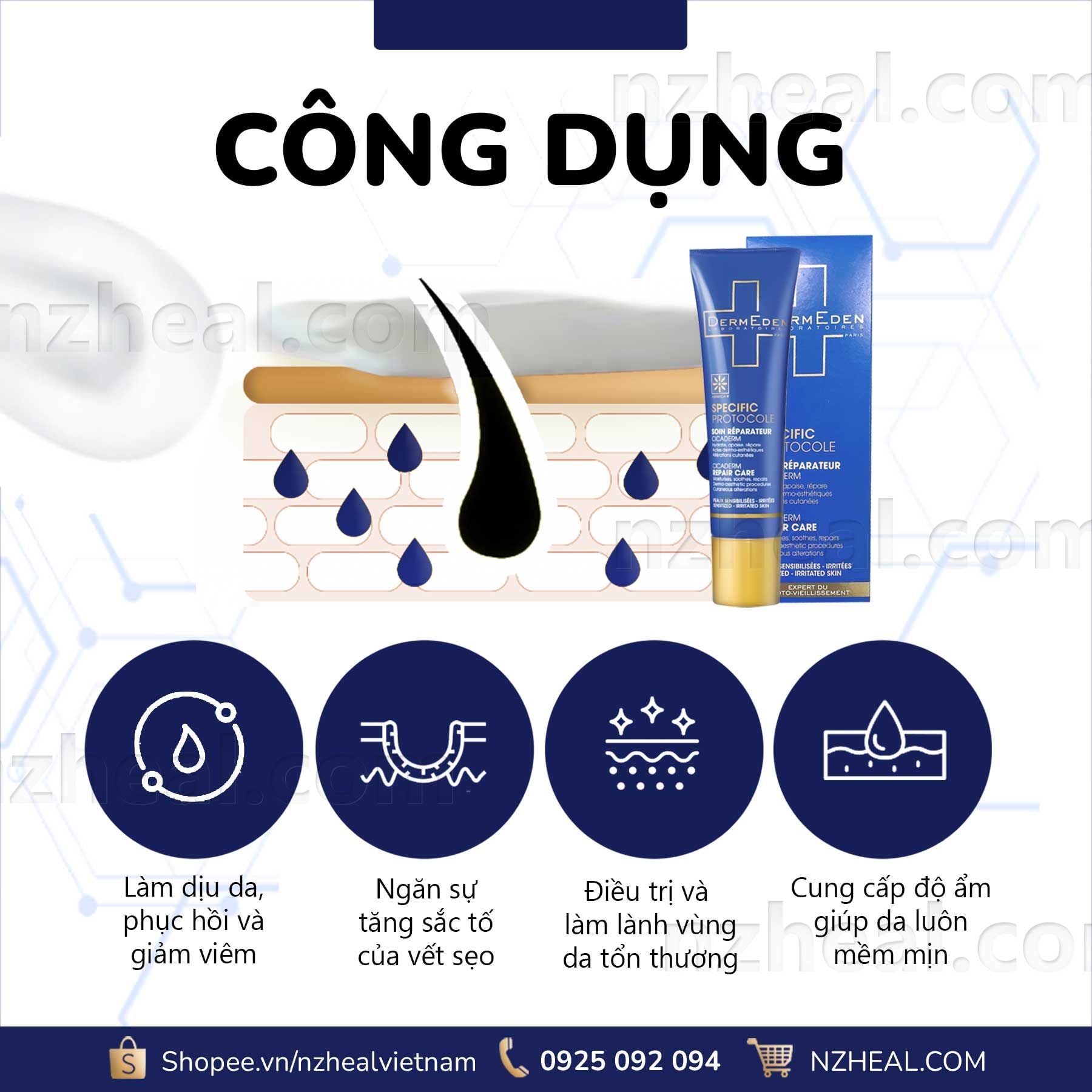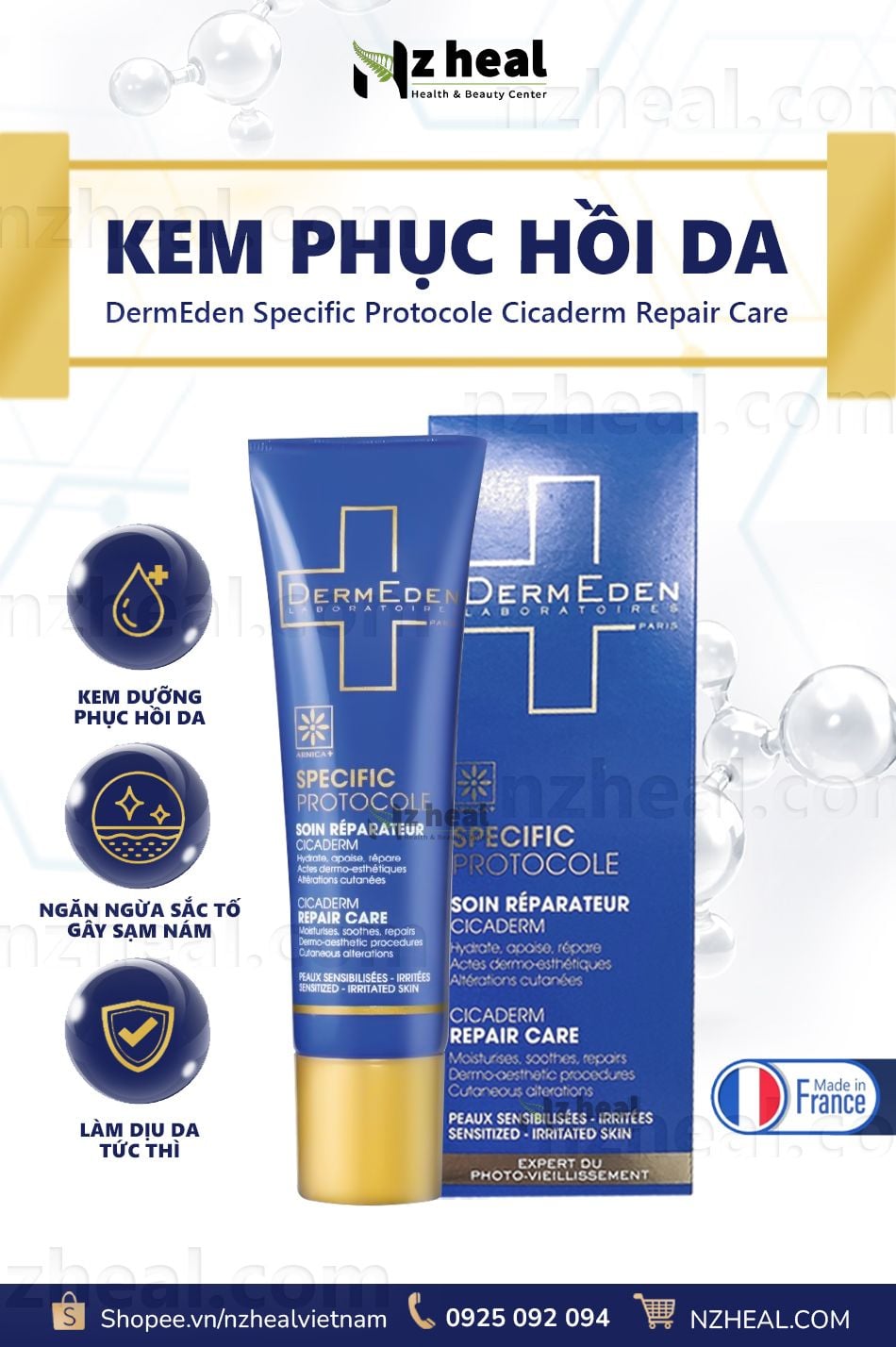 Kem dưỡng phục hồi da DermEden Specific Protocole Cicaderm Repair Care (30ml)