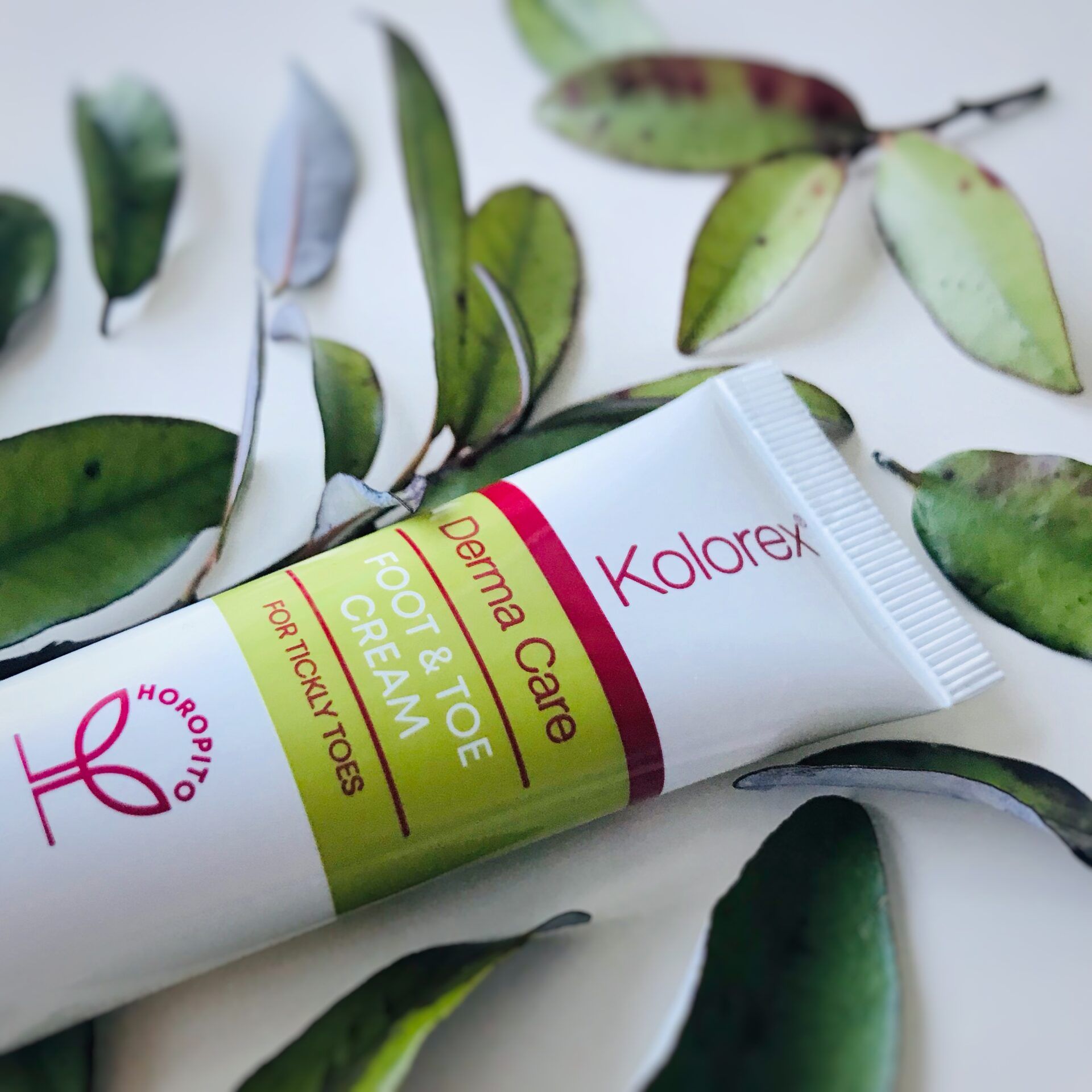 Kem Kolorex Foot & Toe Care Cream chứa chiết xuất Horopito kháng nấm và kháng khuẩn mạnh nhất (kolorXtract-50 ™, hàm lượng nhiều hơn 24 lần so với Kolorex® Intimate Care Cream), kết hợp Tea Tree Oil và Lemon Tea Tree Oil để tăng lợi ích sát trùng; dầu hạt mơ, chiết xuất lô hội và vitamin E giúp chữa lành và làm dịu; axit lactic giúp cân bằng độ pH của da.