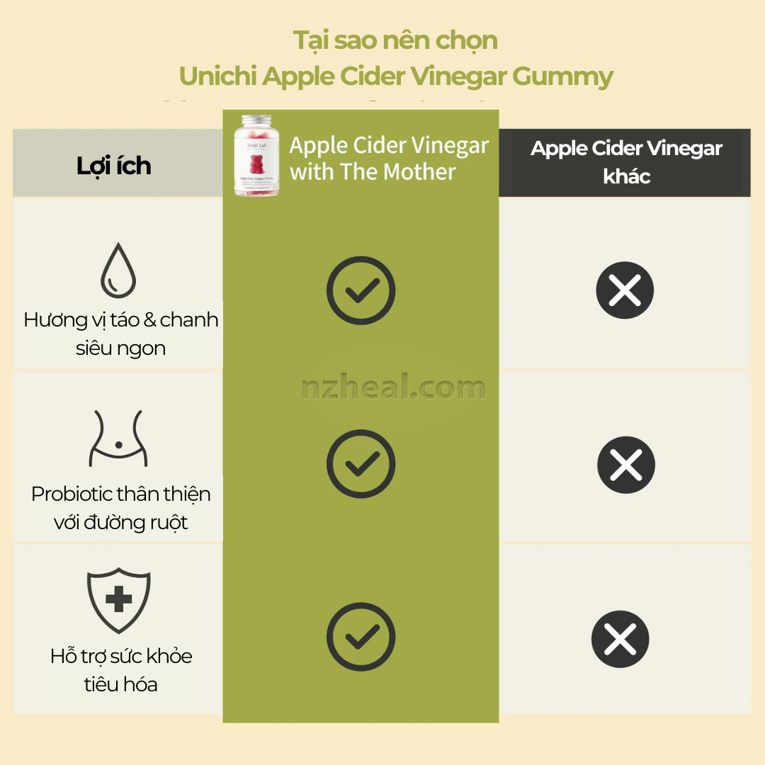 Kẹo dẻo giấm táo giảm cân Unichi Apple Cider Vinegar Gummy (60 viên)[/caption]