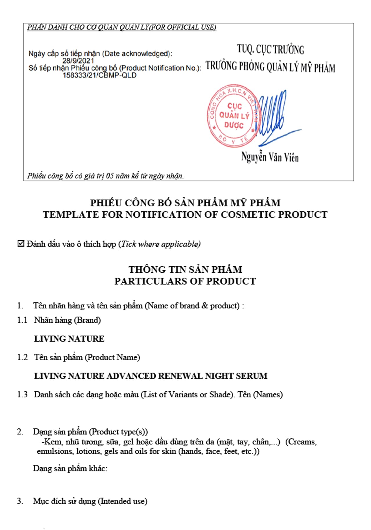Serum dưỡng da ban đêm Living Nature Advanced Renewal Night Serum 30ml