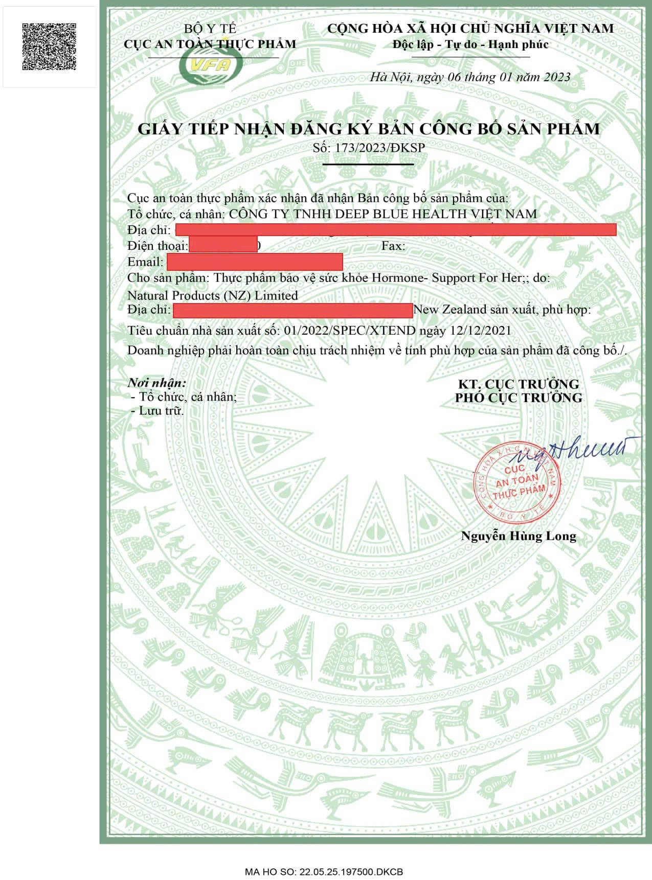Thương nhân nhập khẩu và chịu trách nhiệm về chất lượng sản phẩm: CÔNG TY TNHH DEEP BLUE HEALTH VIỆT NAM